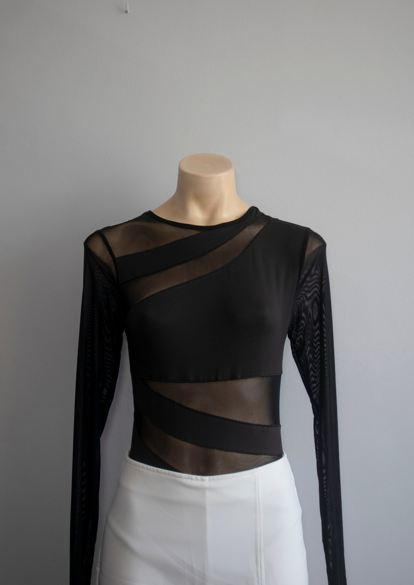 Este body combina sensualidad y estilo moderno gracias a su diseño en tull semitransparente con recortes geométricos estratégicos. Su tejido elástico se adapta perfectamente a la silueta, ofreciendo comodidad y un ajuste favorecedor.