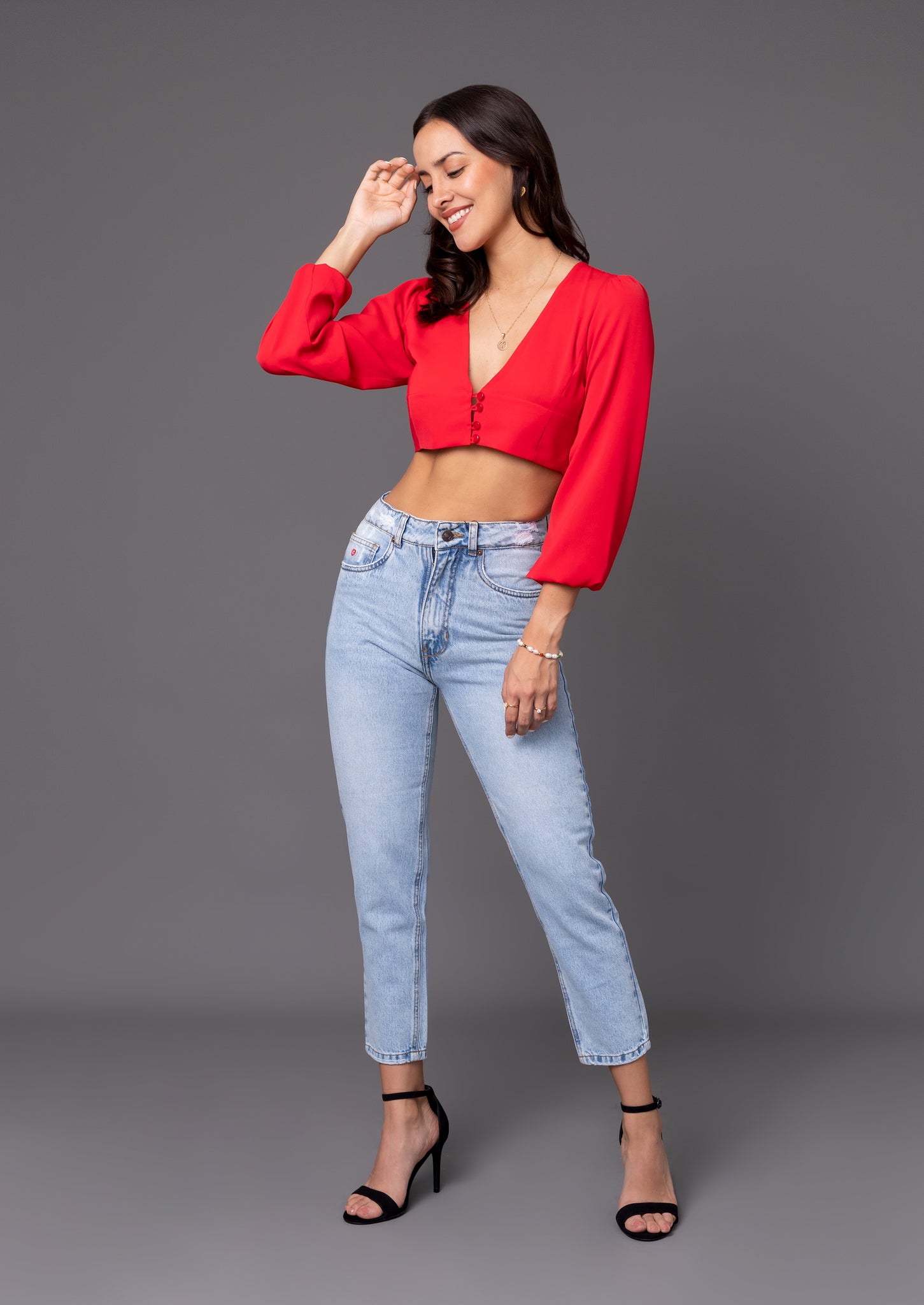 Blusa cómoda, sexy y elegante con detalle de botones en cintura. Ideal para reuniones formales o un date con amigas/novio.